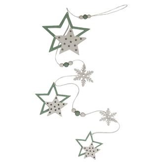 Dekorační girlanda k zavěšení - hvězda.Rozměry : 11,5 x 0,4 cm, výška 12 cm, celková délka girlandy 68 cm.Barva : kombinace bílá, zelená.Materiál na bázi dřeva. przeczytaj całość