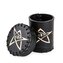 Kožený kelímek na kostky s víčkem, vyrobený ze 4 mm hrubé kůže, velikost 7x8 cm. Je zdoben ve stylu Lovecraftových hororových příběhů. Kelímek je skvělý kupříkladu pro dokreslení atmosféry při hraní her na hrdiny, hry Arkham Horror či jiných her z prostředí Call of Cthulhu. przeczytaj całość