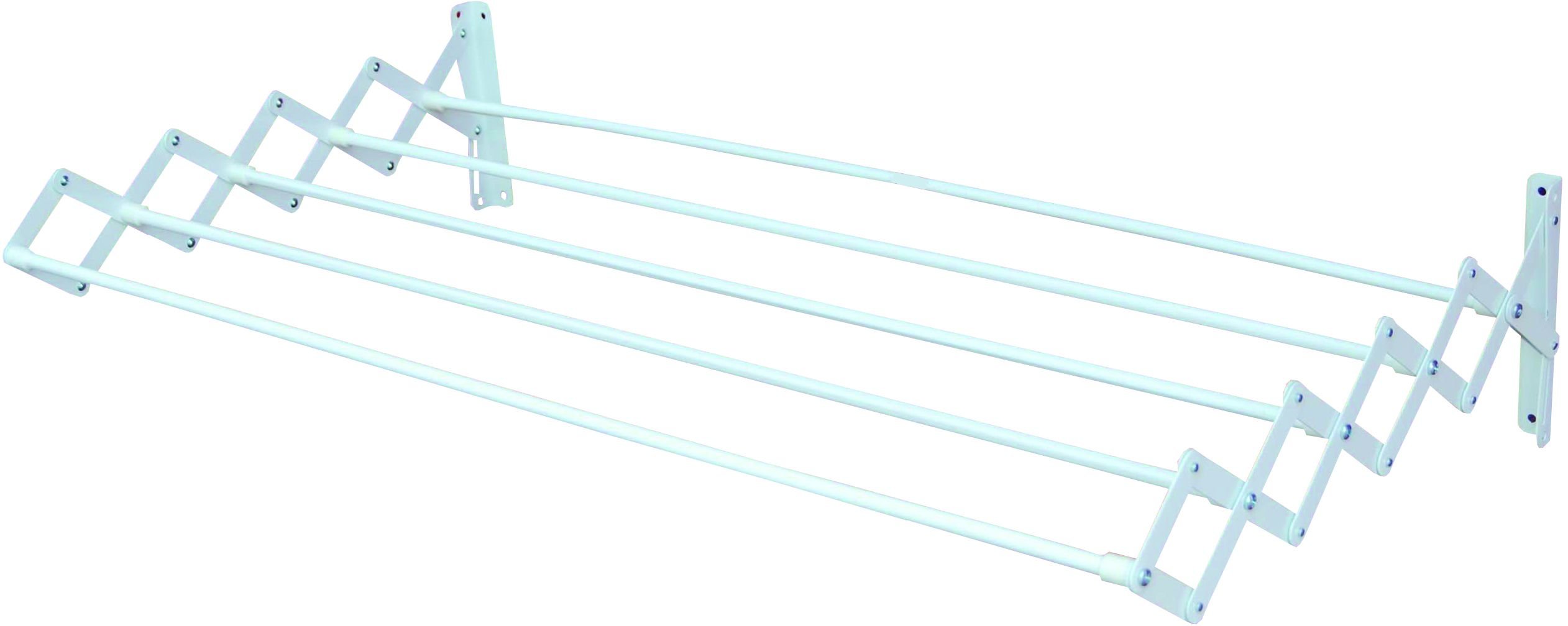 Sušák na prádlo harmonikový. Pevná celokovová konstrukce. 5 ocelových tyčí potažených plastem, úchyt kovový ošetřený Komaxitem. Hmoždinky a šrouby jsou součástí balení. przeczytaj całość