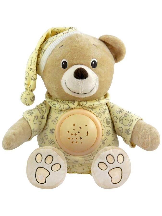 Plyšový medvídek s projektorem Baby Mix. Po stisknutí tlačítka umístěného na bříšku zapnete světelné efekty, jako jsou svítíci hvězdičky, srdíčka a měsíček, které mění barvu a promítají se na stěnu. Jemné světýlko, je ideální jako noční lampička. Dítě může poslouchat jemnou ukolébavku. Medvídka...