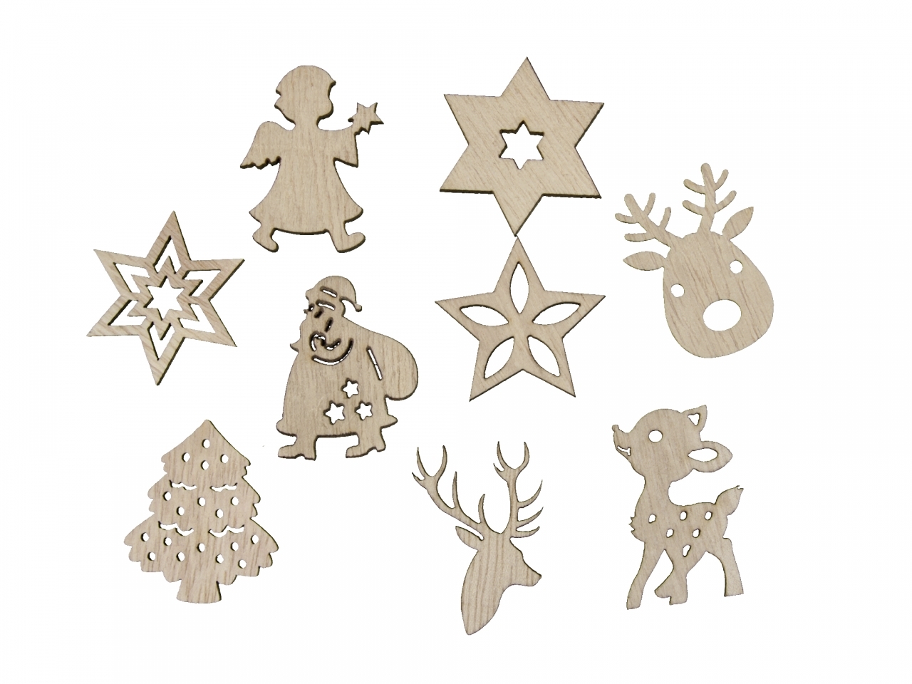 Dřevěné dekorace přírodní, sada 72 ks