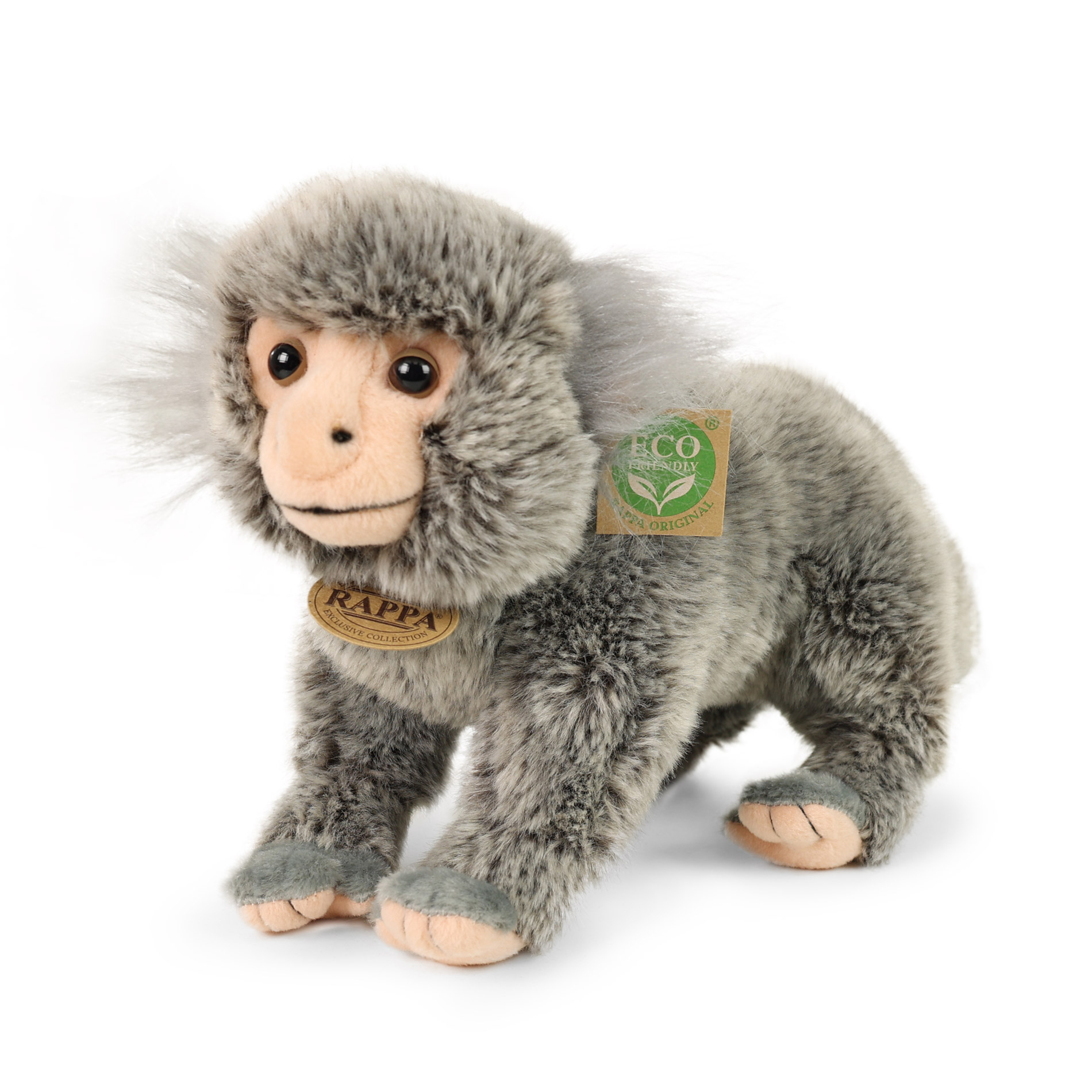 Plyšový Kosman o velikosti 25 cm je ručně ušitý z vysoce kvalitní, jemné plyše, a díky tomu vypadá jako živý. Je součástí exkluzivní kolekce plyšových hraček RAPPA. Rozhodli jsme se jít zelenou cestou co nejméně zatěžující životní prostředí - cestou ECO-FRIENDLY. Co to vlastně ECO-FRIENDLY...