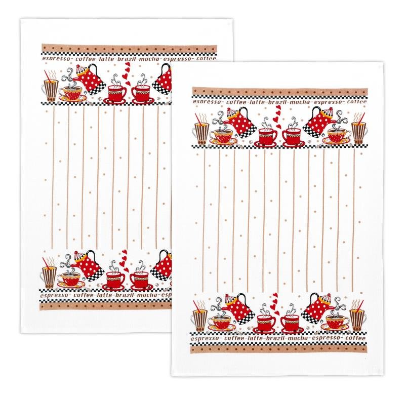 Kuchyňské utěrky - sada 2 kusů - latte - červená, béžová - 40x60 cm