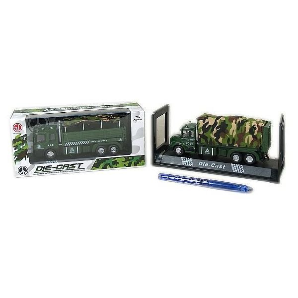 Auto vojenské o velikosti 15cm, kov, zpětný chod, na baterie/12/. Věk: 3+ przeczytaj całość