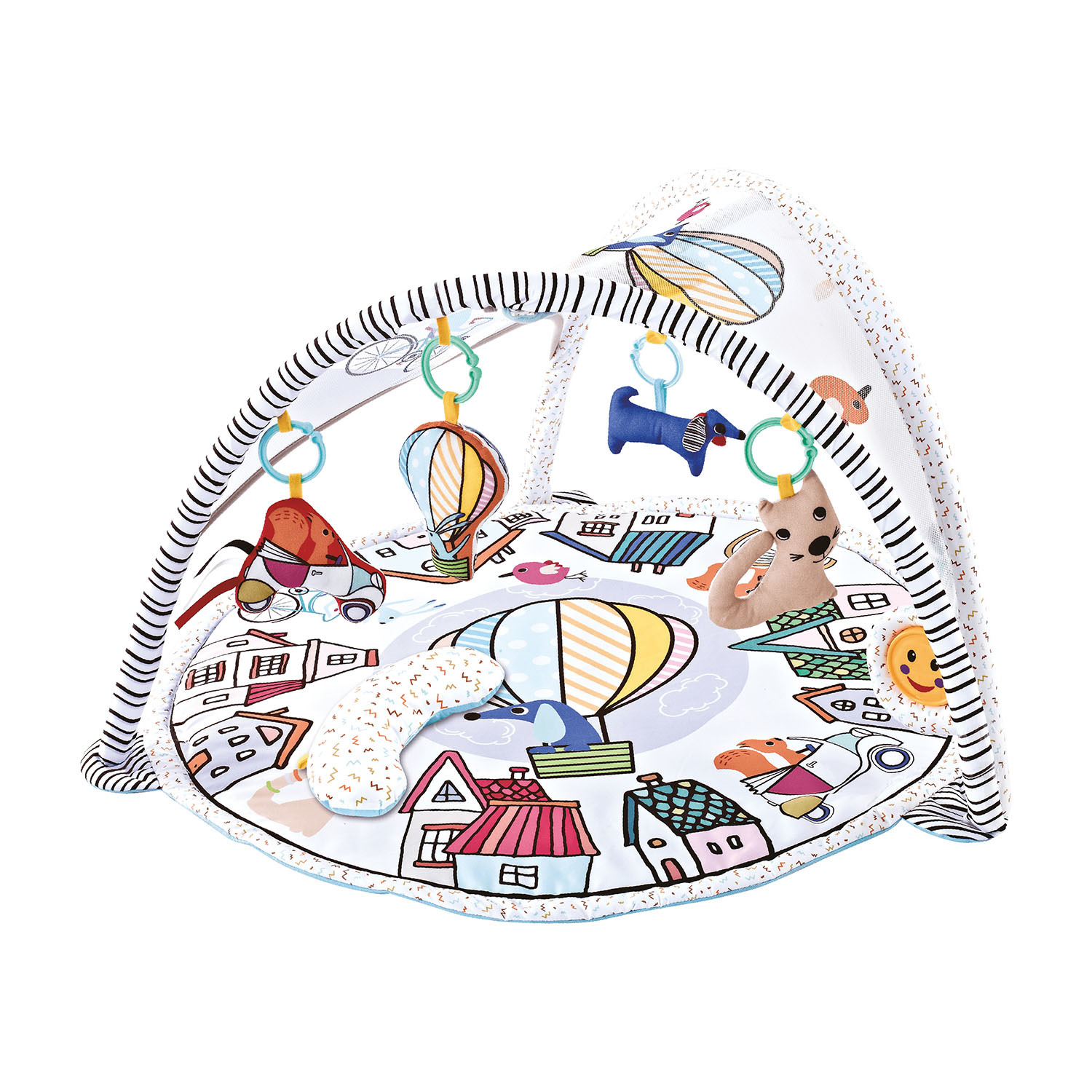 W skład maty aktywności wchodzi profilowana poduszka, która stanie się świetnym pomocnikiem przy „skubaniu konika”. Dzięki niej dzieci zyskują potrzebne podparcie. Do poduszki można przymocować wiszące zabawki - dzięki pętelkom nie będą się od niej odsuwać, a jednocześnie motywują dziecko do prawidłowego trzymania ciała. Poduszka przyda się później także podczas ćwiczeń raczkowania, gdy położysz ją dziecku pod brzuszkiem.
