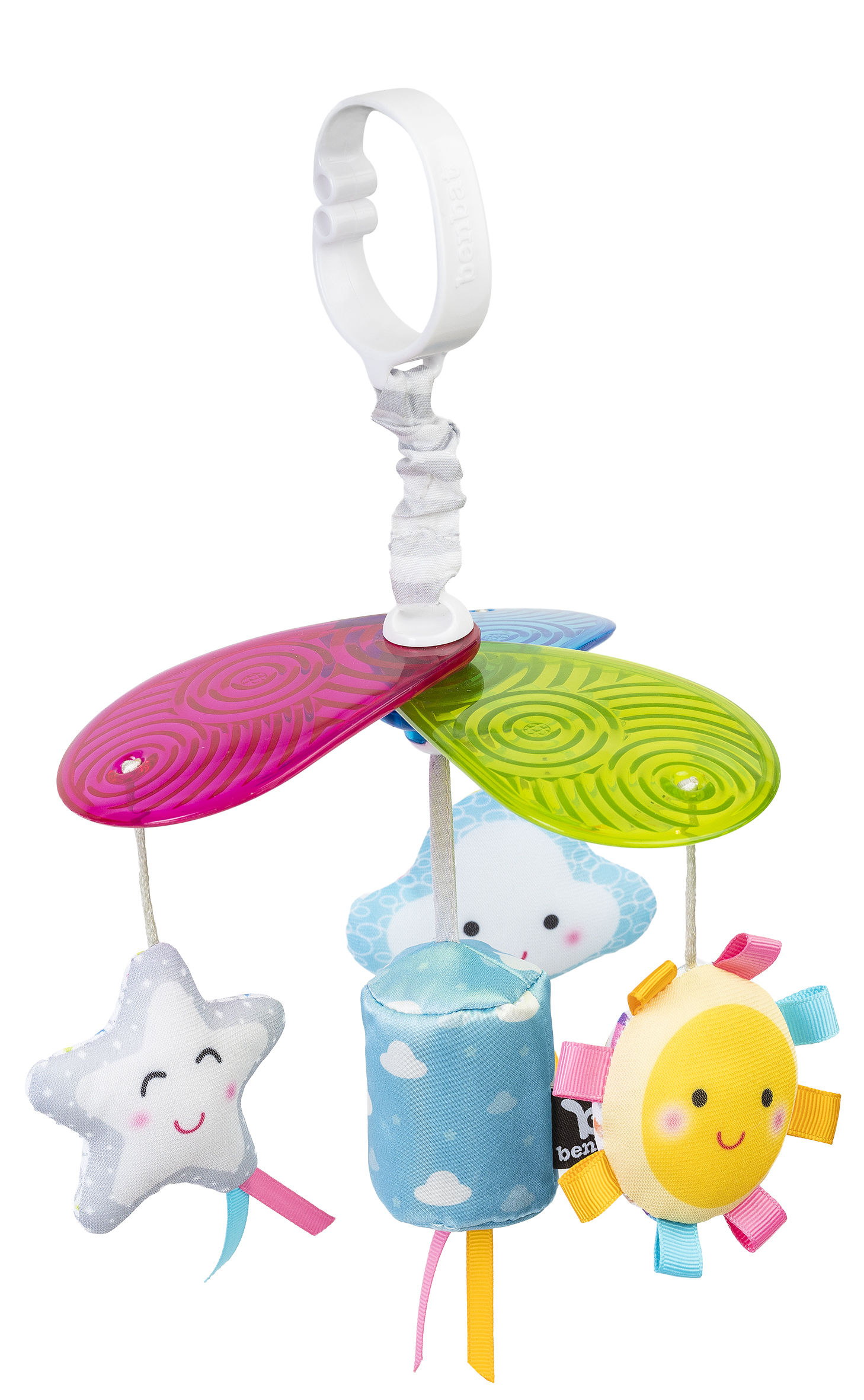 Skladná a snadno přenosná hračka, která se pomocí klipu jednoduše připevní na jakýkoliv kočárek. Hračky zavěšené na kolotoči pomáhají rozvíjet zrakové a hmatové schopnosti. Dohromady znázorňují oblohu. Děti nad sebou uvidí pohupující se mráček, sluníčko a měsíc. Uprostřed je umístěno chrastítko,...