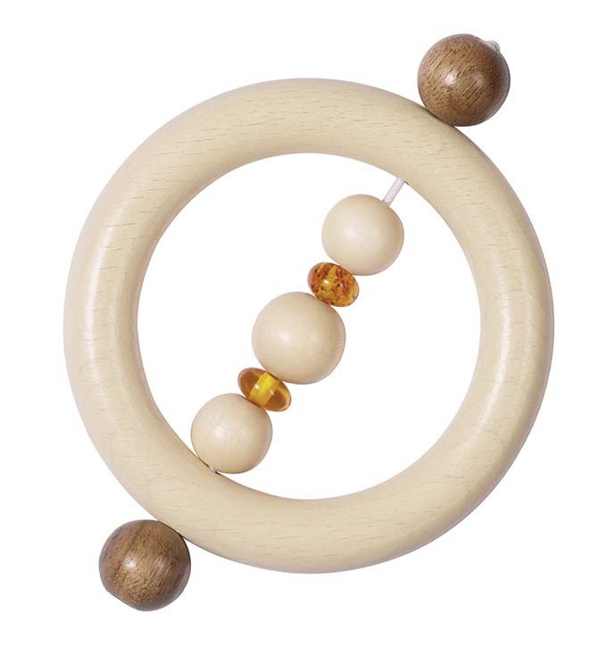 Chrastítko s korálky a pravým jantarem, při pohybu příjemně chrastí.Řada heimess nature znamená čistý, přírodní, kvalitní a ekologický výrobek. Váš zájem a Vaše přání stálo u zrodu této nové série výrobků z masivního dřeva. Pro rozvoj dovedností a radost přinášíme nejmenším dětem hračky ze dřeva...