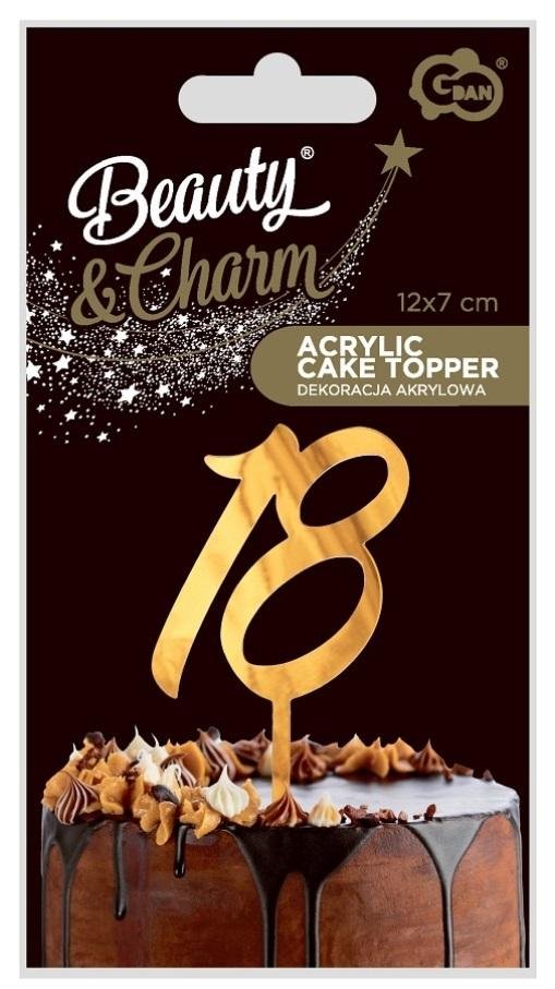 Dekoracja akrylowa na tort 18 urodziny, złota, 12x7 cm przeczytaj całość