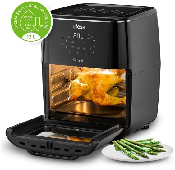 Horkovzdušná fritéza Ufesa Sensei Horkovzdušná fritéza s extra velkou kapacitou se pyšní názvem Sensei. Díky 12 l  objemu můžete připravovat pokrmy v opravdu velkém množství.Připravte si své recepty zdravějším způsobem, díky technologii 360o vysokorychlostní cirkulace vzduchu budou vaše pokrmy przeczytaj całość