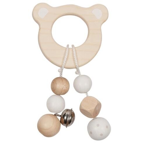 Dřevěné chrastítko ve tvaru medvěda a malou rolničkou zaujme všechna malá miminka, která se již zajímají o svět kolem sebe.Miminka pomocí kroužku objevují odlišné povrchy a tvary. Dřevěný kroužek má v sobě jemné vroubky a je různě tvarované. Rolnička vydává krásný zvuk, který si děti ihned...