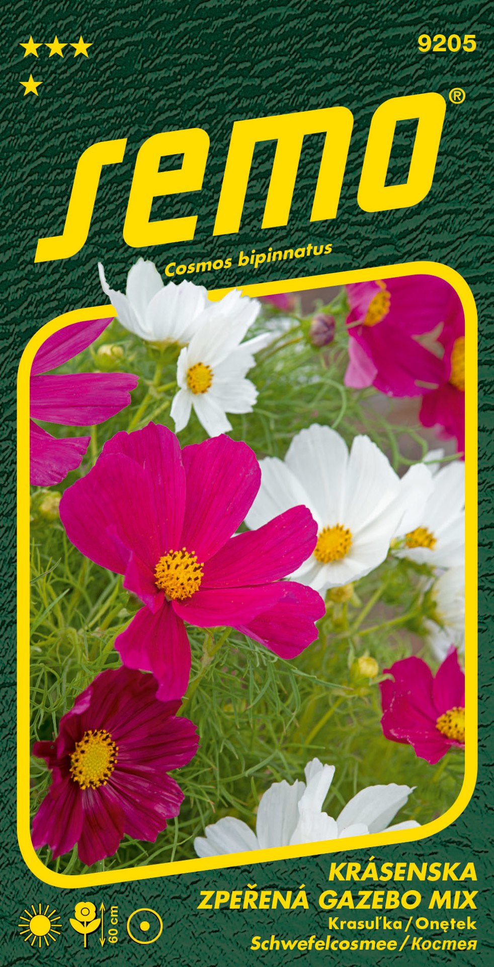 Mieszanka Gazebo (kod 9205) zawiera nasiona krasenki pierzastej, popularnej jednorocznej rośliny o delikatnych kwiatach w odcieniach bieli i różu. Roślina ta jest doskonała do wiejskich ogródków i często stanowi część mieszanek letnich. Jej średniej wielkości kwiaty nie tylko pięknie ozdabiają ogród, lecz także świetnie uzupełniają kompozycje kwiatowe w wazonie dzięki niezwykłemu urokowi i długiej trwałości po ścięciu.