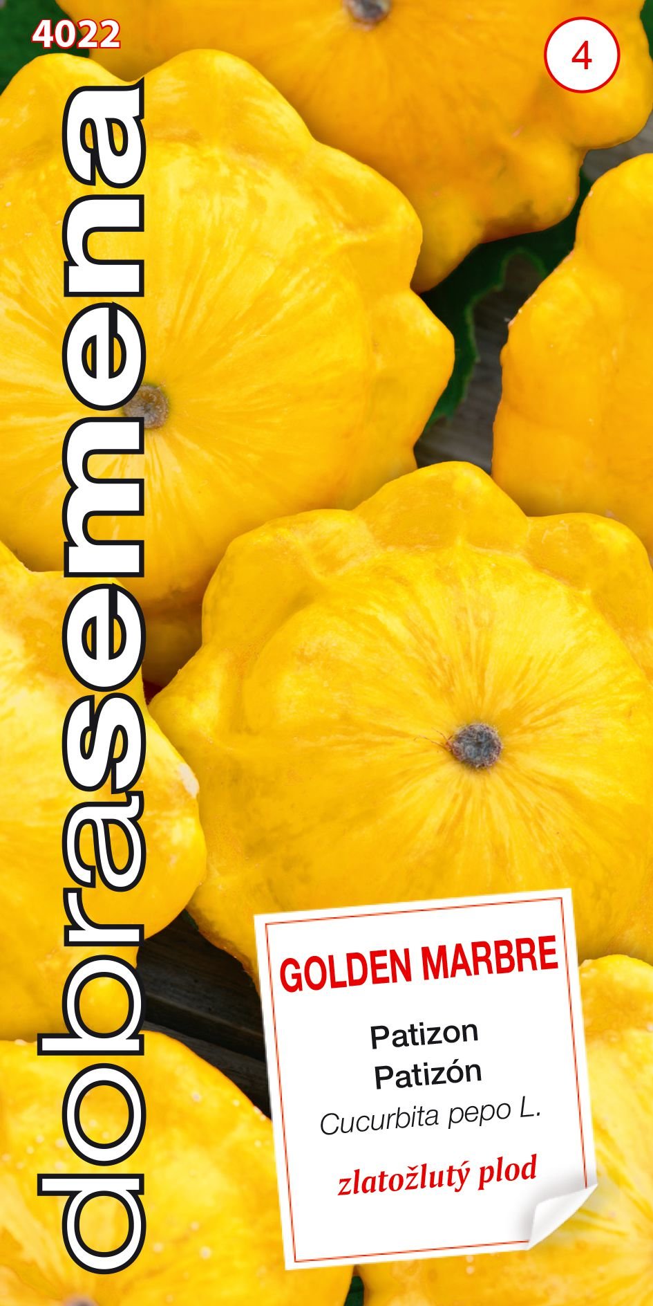 GOLDEN MARBE - złotożółty patison o płaskich, dyskowatych owocach osiągających 12 - 15 cm. Młode owoce można na bieżąco zbierać i konserwować w słodko-kwaśnej zalewie. W pełni dojrzałe owoce z twardą skórką są dobrze przechowywalne. Odmiana jadalna i ozdobna jednocześnie. Można wysiać bezpośrednio na rabatę, w gniazda po 2 - 3 nasiona.
