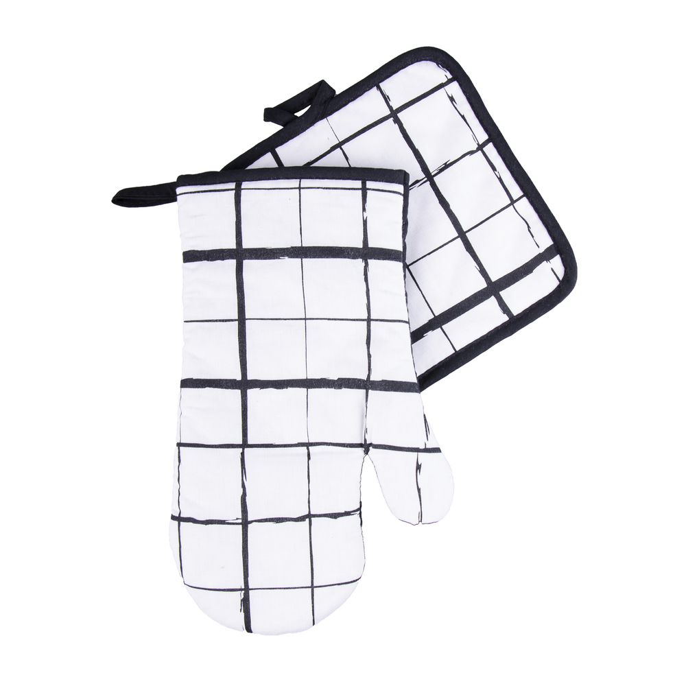 Kuchyňský set rukavice/chňapka BLACK WHITE motiv B, 18x30 cm/20X20 cm ESSEX, 100% bavlna