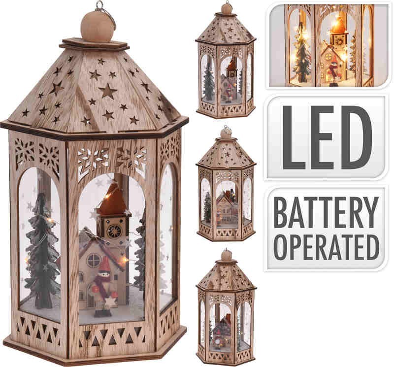 dekorativní Vánoční lucerna s LED osvětlenímje vyrobena ze dřevaLED diody s dlouhou životností (teplá bílá)uvnitř lucerny zasněžená vánoční scenériespodní základna je pevná a stojí stabilněvhodné do interiéru, ale i na terasu, balkon i zahradulucerna je vhodná k postavení i zavěšenínapájení: 2x...
