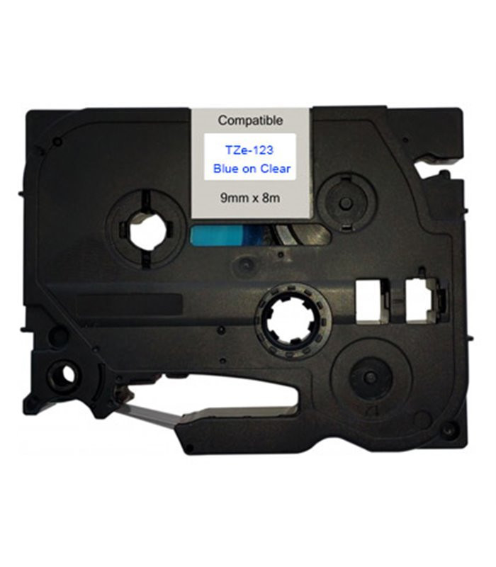 Kompatibilní páska s Brother TZ-123 / TZe-123, 9mm x 8m, modrý tisk / průhledný podklad