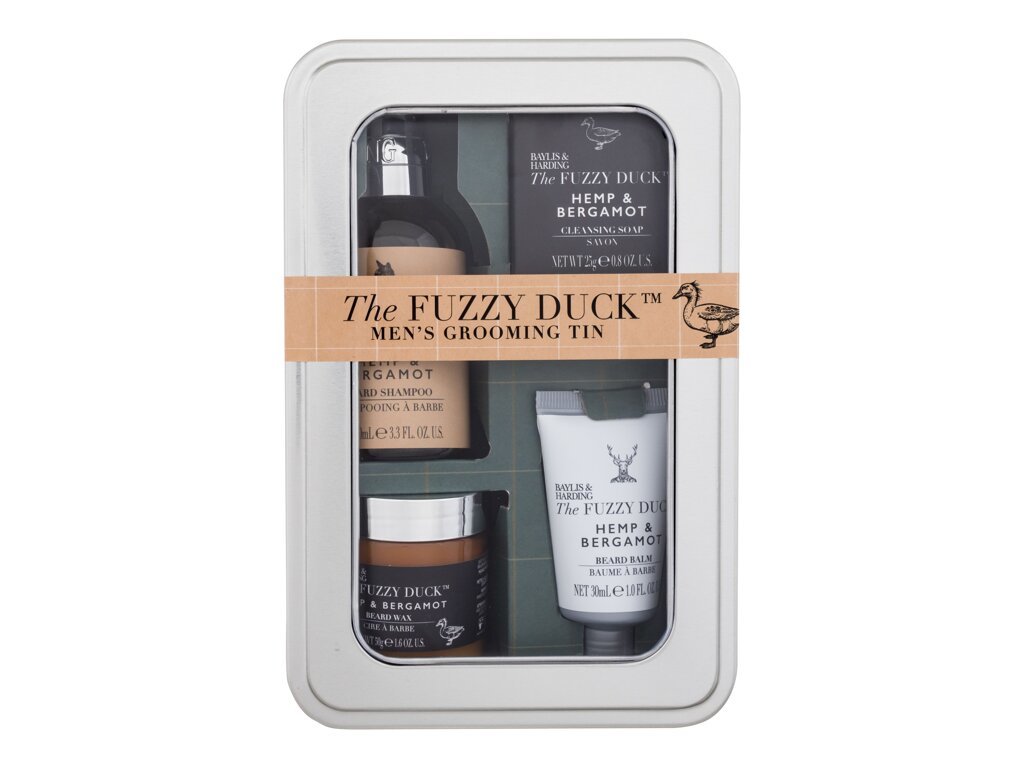 Baylis & Harding The Fuzzy Duck šampon na vousy The Fuzzy Duck Hemp & Bergamot 100 ml + vosk na vousy The Fuzzy Duck Hemp & Bergamot 50 g + čisticí mýdlo na obličej The Fuzzy Duck Hemp & Bergamot 25 g + balzám na vousy The Fuzzy Duck Hemp & Bergamot 30 ml