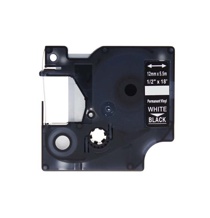 Kompatibilní páska s Dymo 1805435, 12mm x 5, 5m bílý tisk / černý podklad, vinyl