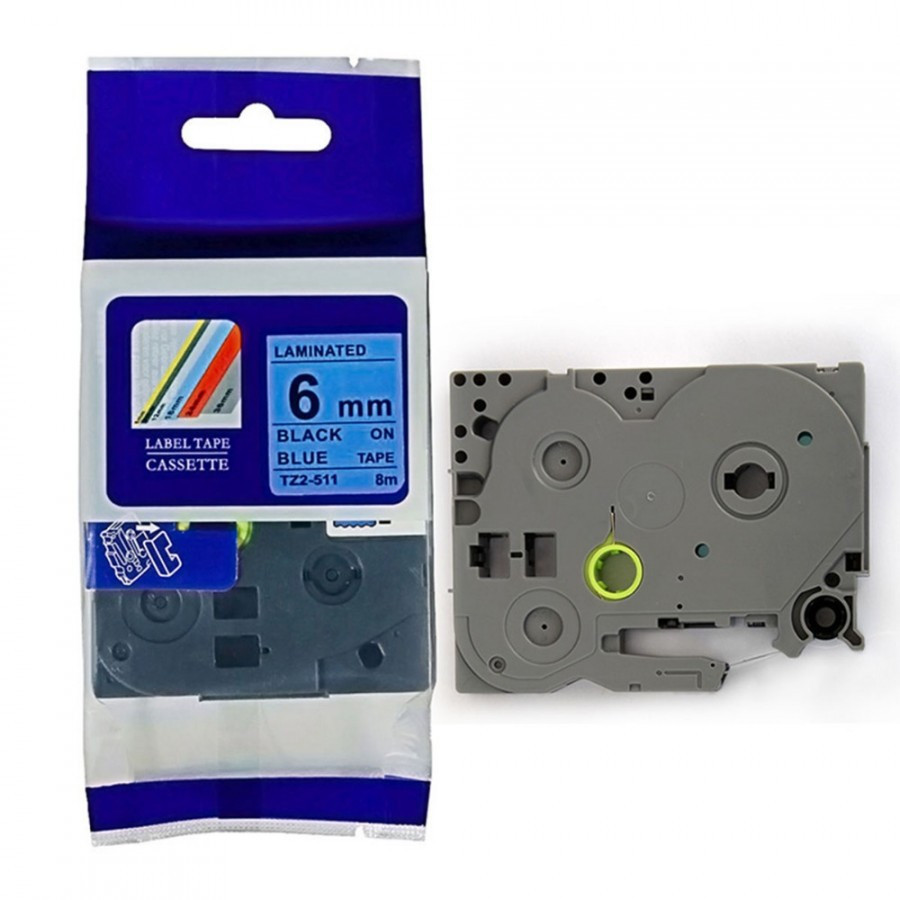 Kompatibilní páska s Brother TZ-511 / TZe-511, 6mm x 8m, černý tisk / modrý podklad