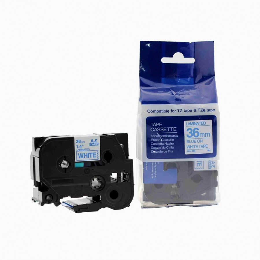 Kompatibilní páska s Brother TZ-263 / TZe-263, 36mm x 8m, modrý tisk / bílý podklad