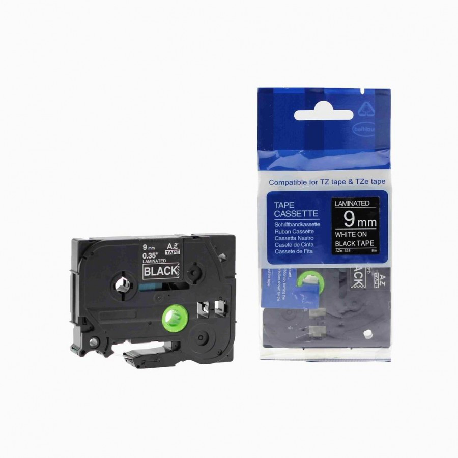 Kompatibilní páska s Brother TZ-325 / TZe-325, 9mm x 8m, bílý tisk / černý podklad