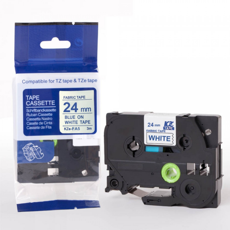Kompatibilní páska s Brother TZe-FA5, 24mm x 3m, modrý tisk / bílý podklad, zažehlovací