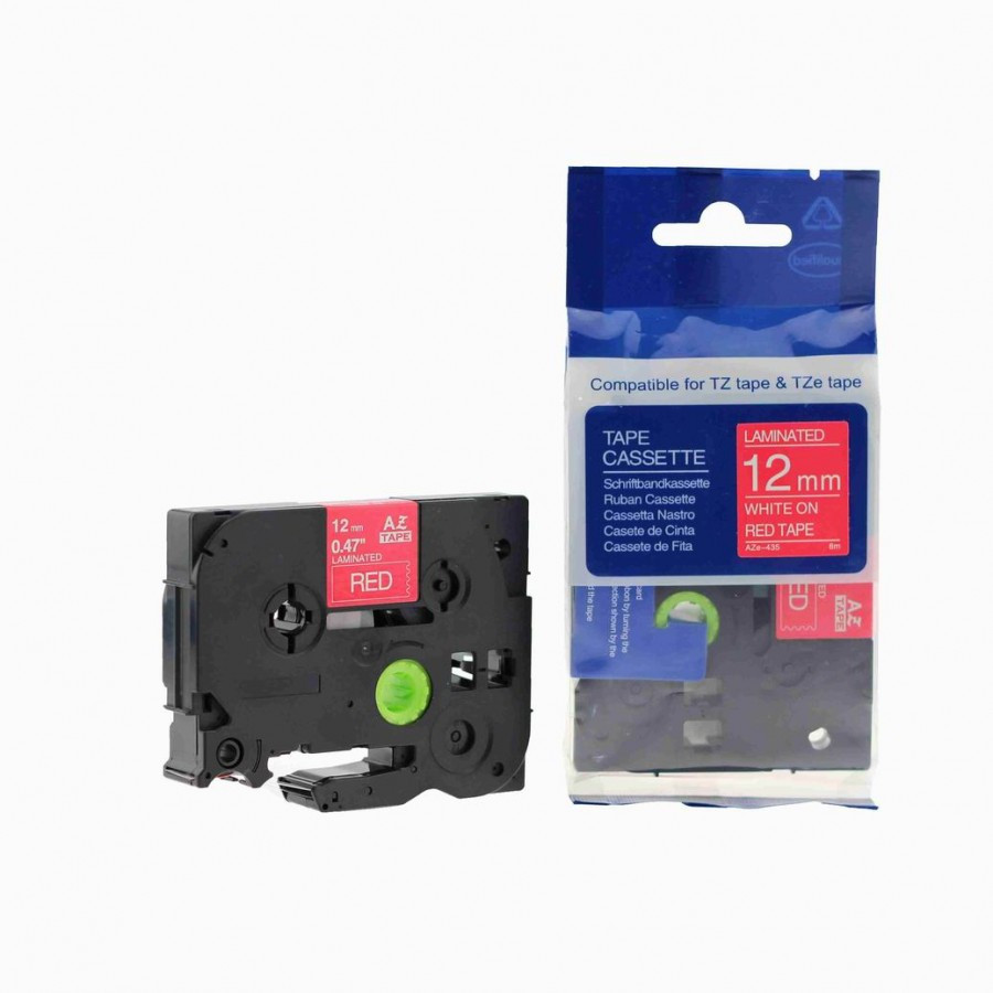 Kompatibilní páska s Brother TZ-435 / TZe-435, 12mm x 8m, bílý tisk / červený podklad