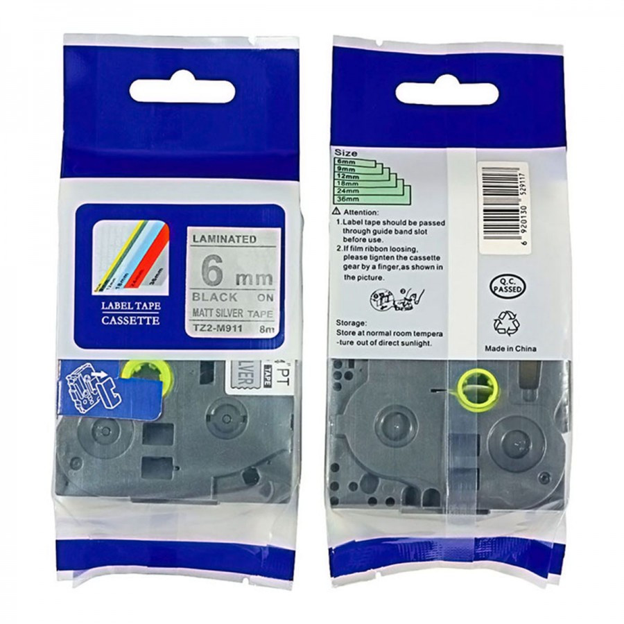 Kompatibilní páska s Brother TZ-M911 / TZe-M911, 6mm x 8m, černý tisk / stříbrný podklad