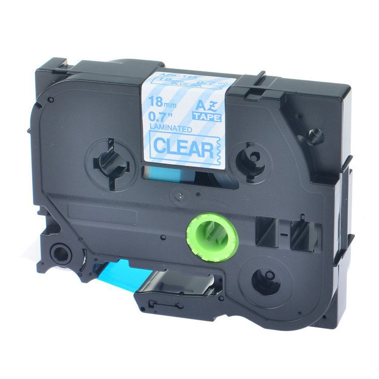 Kompatibilní páska s Brother TZ-143 / TZe-143, 18mm x 8m, modrý tisk / průhledný podklad