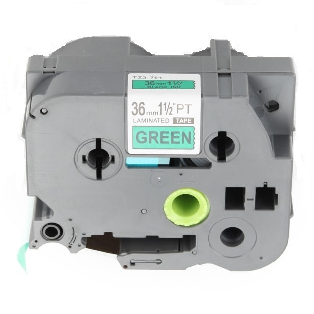 Kompatibilní páska s Brother TZ-761 / TZe-761, 36mm x 8m, černý tisk / zelený podklad