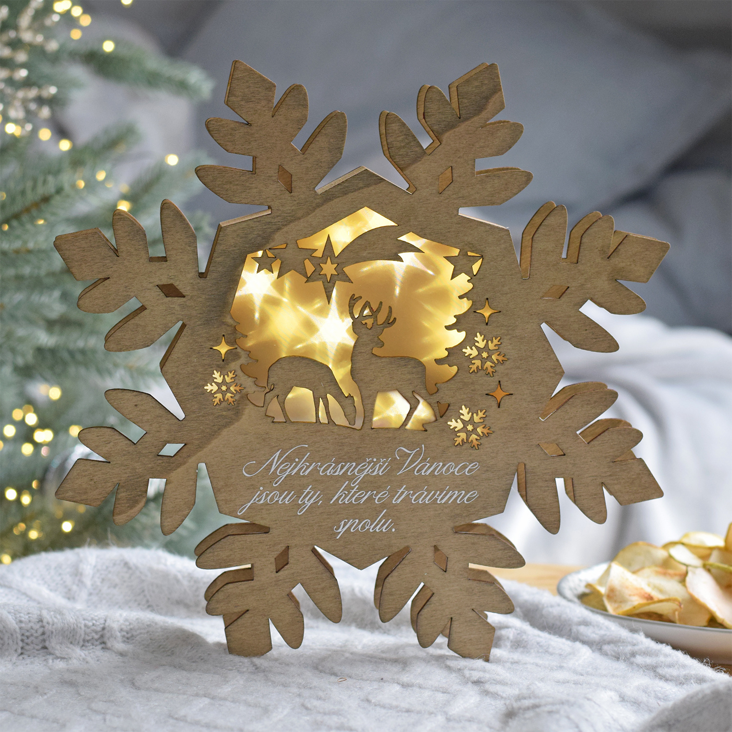 Ozdobte si na Vánoce domov tou správnou dekorací. Tato dřevěná vločka dokáže vytvořit až kouzelnou atmosféru, kterou si užijete spolu s celou rodinou. Kvalitní zpracování a český text jsou naší chloubou.  velikost: 26 x 26 cmnabíjení na 2 AA baterie (Nejsou součástí) przeczytaj całość