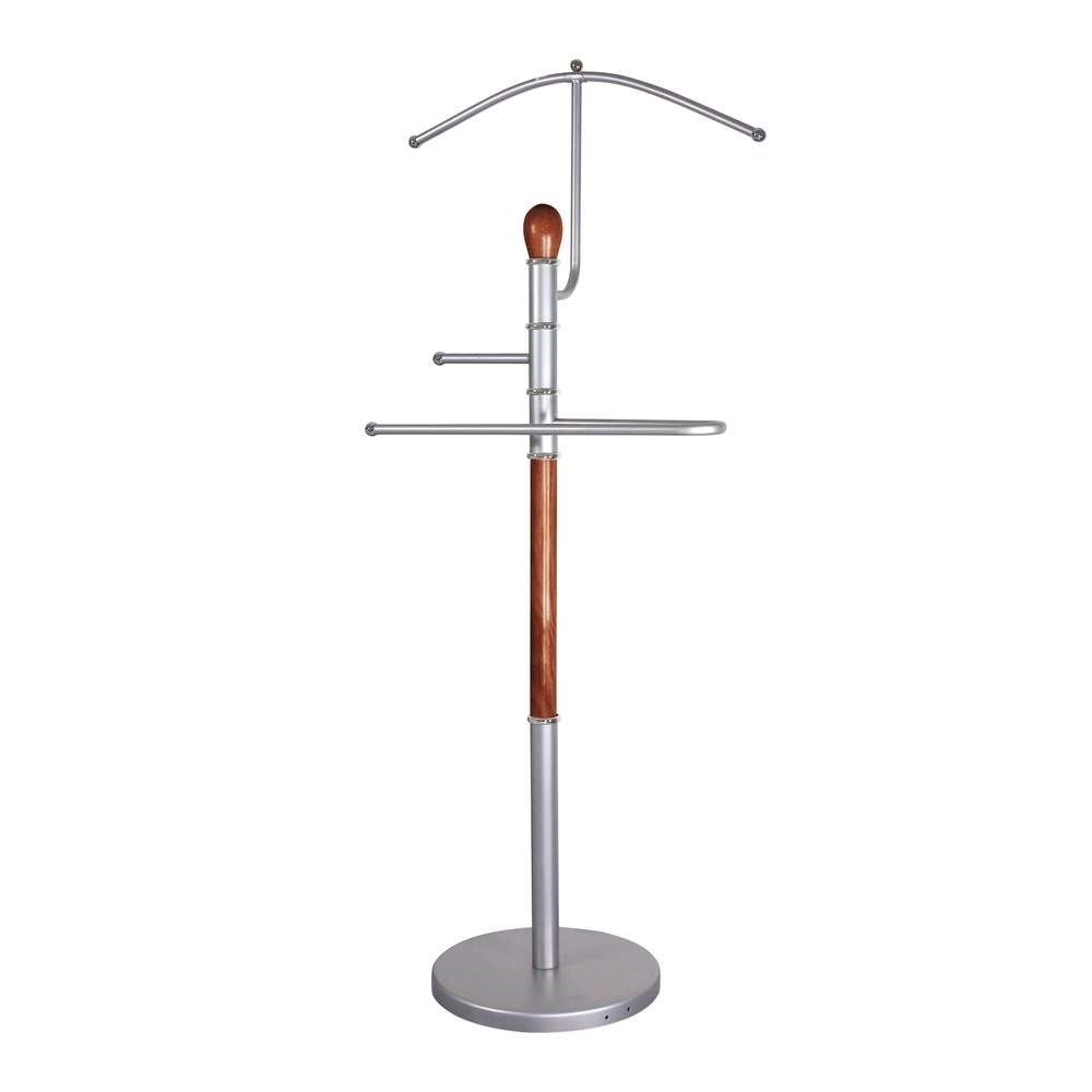 Niemy lokaj w wersji chrom / drewno to praktyczny pomocnik do odkładania odzieży i różnego rodzaju ubrań. Wysokość lokaja wynosi 107 cm, konstrukcja ma stabilną podstawę, chrom jest w wykończeniu matowym, drewno w ciemnym kolorze. EAN 8591022560907 przeczytaj całość