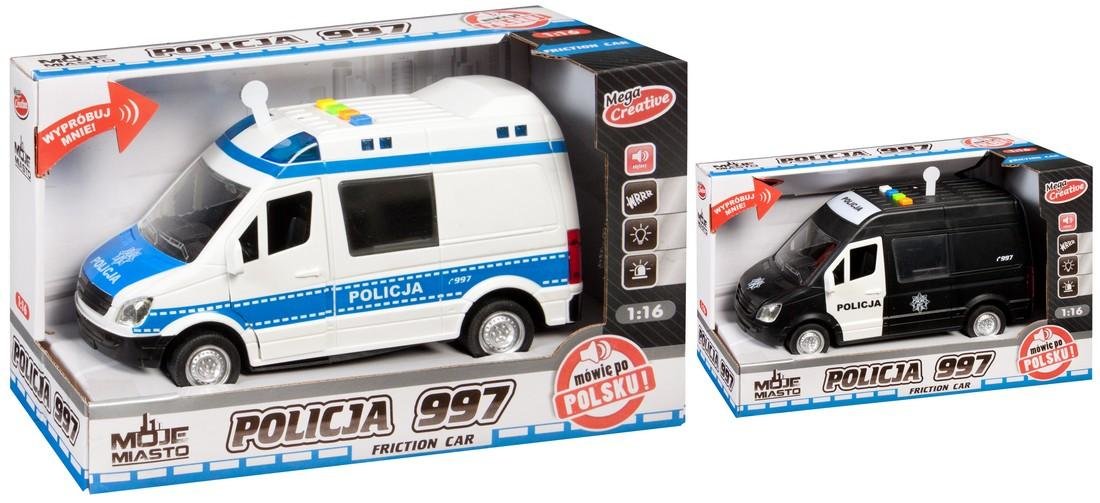 Policja 997 to model nowoczesnego pojazdu z serii Moje Miasto, posiadający szereg możliwości i efektów pozwalających na różnorodną i rozwijającą zabawę.