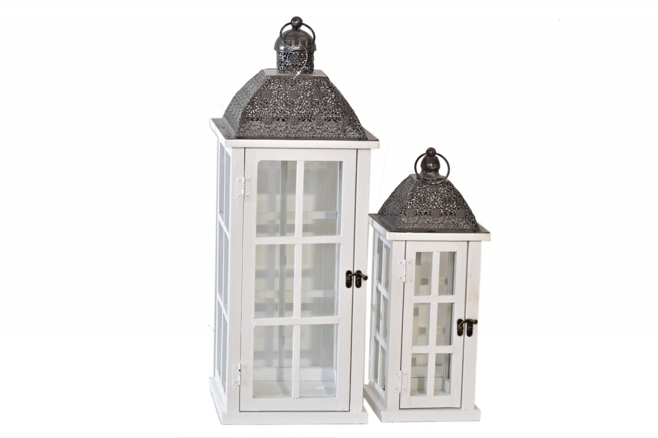 Dřevěná lucerna Abby, sada 2 ks, bílá