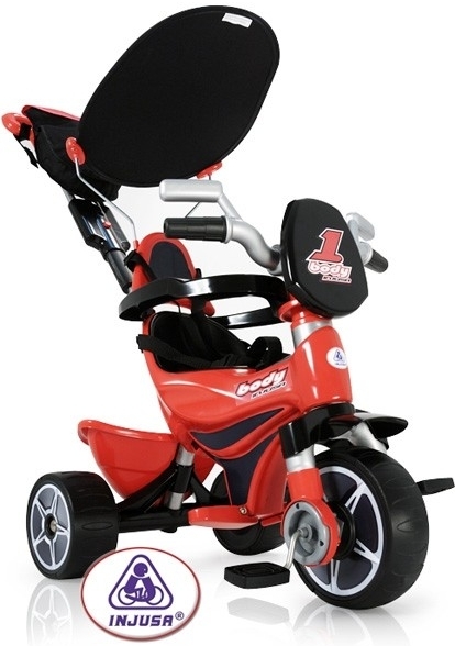 Tříkolka je vhodná již pro děti od 10 měsíců!Pro období od 10 do 15 měsíců je přítomna obručovitá hrazda, která spolu s tříbodovým pásem zajišťuje bezpečí pro ty nejmenší děti. Zároveň jsou přítomny stupátka, takže dítě může byt vezeno, aniž by samo muselo šlapat do pedálů. Pedály lze přepínat do...