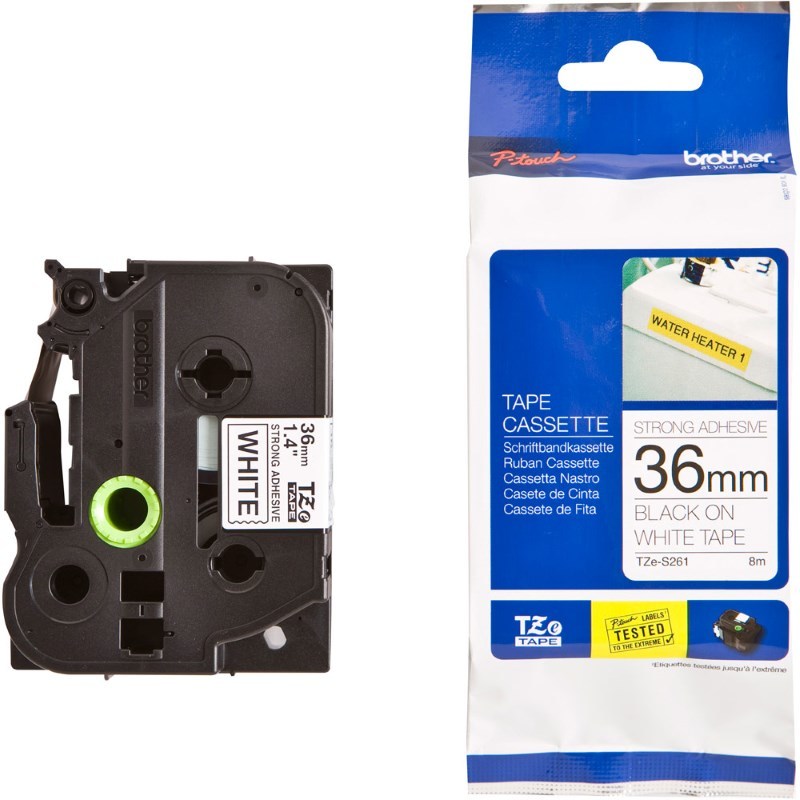 Brother TZE-S261Kazeta s extrémně přilnavou laminovanou páskou vhodnou pro denní použití v průmyslové výrobě, skladech, kancelářích apod. Páska je vysoce odolná proti teplotním vlivům, poškrábání, slunečnímu záření a díky tomu je zaručena ochrana vytištěného textu.ZÁKLADNÍ SPECIFIKACEBarva: bílá...