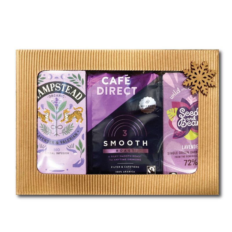 Dárkový fialový balíček levandulový čaj, Arabika mletá káva a levandulová čokoláda