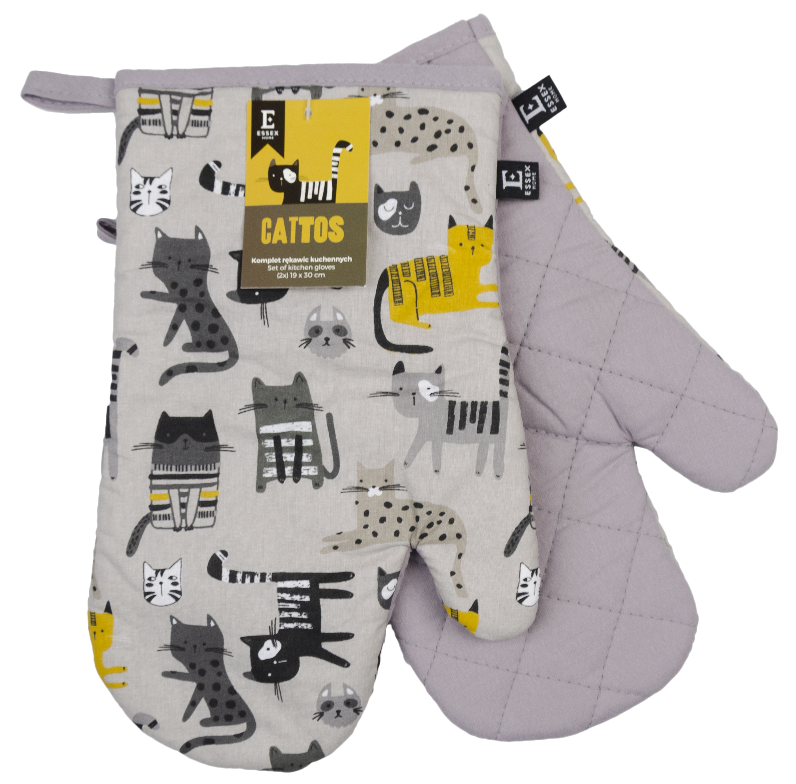 Kuchyňské bavlněné rukavice - chňapky CATTOS šedá kočičí motiv 100% bavlna 19x30 cm Essex