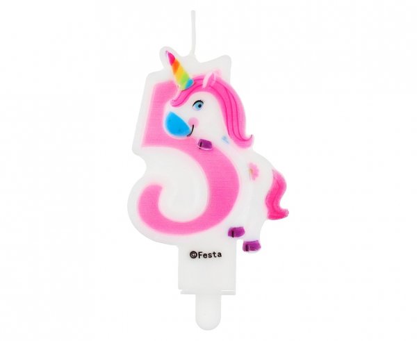 Svíčka číslice 5 - Duhový jednorožec 7,8 cm