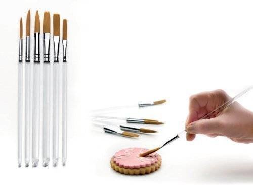 Sada šesti různých cukrářských štětců na zdobení mnoha cukrářských výrobků. przeczytaj całość