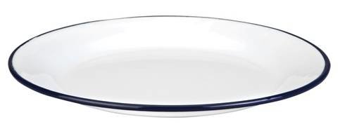 Talíře vyrobené z kvalitního smaltu se zářivě bílou barvou s tenkou modrou linkou. przeczytaj całość