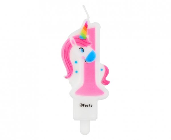 Narozeninová Svíčka číslice 1 - Duhový jednorožec Jčetně držáčku do dortu. Velikost 7,8 cm Balení 1 ks przeczytaj całość