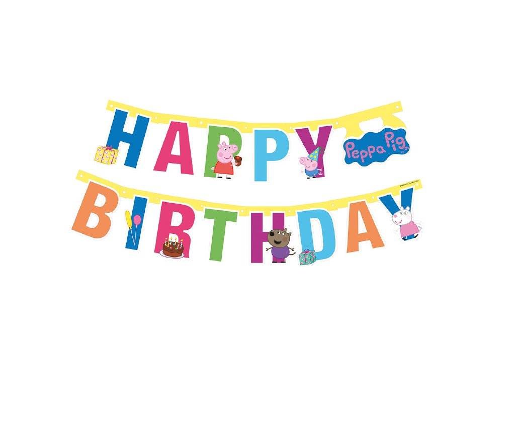 Girlanda urodzinowa "Happy Birthday" z motywem świnki Pepa. Długość 140 cm. przeczytaj całość