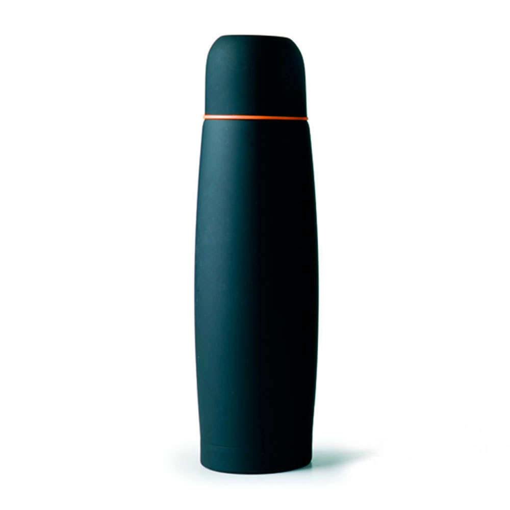 Černá termoska s oranžovým pruhem o objemu 1 l. przeczytaj całość