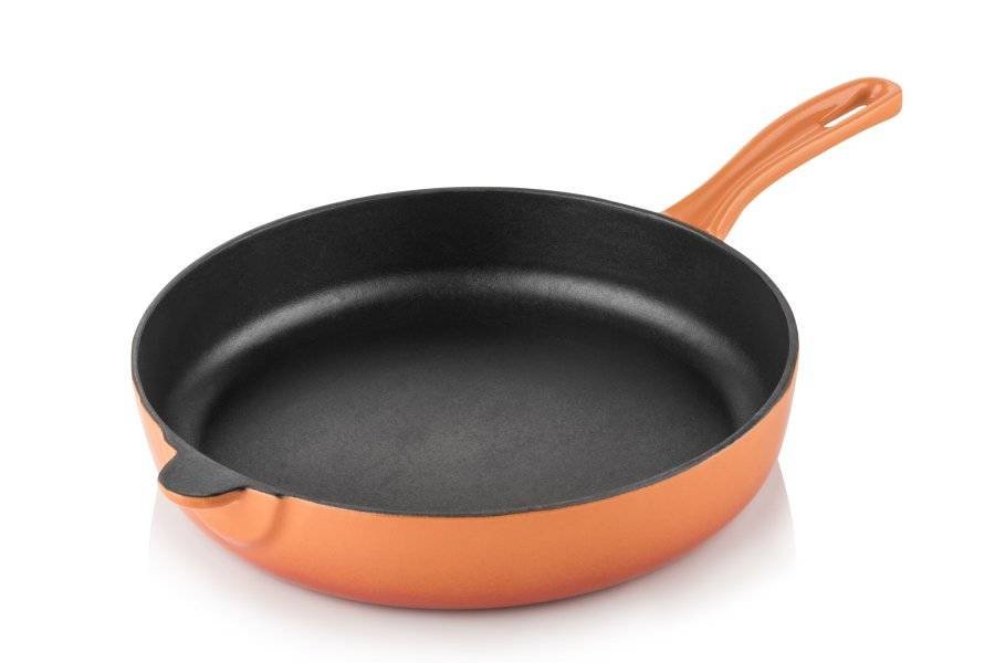 Oranžová litinová pánev se smaltovaným povrchem je ideálním řešením pro všechny možné způsoby vaření. Průměr 20 cm. przeczytaj całość