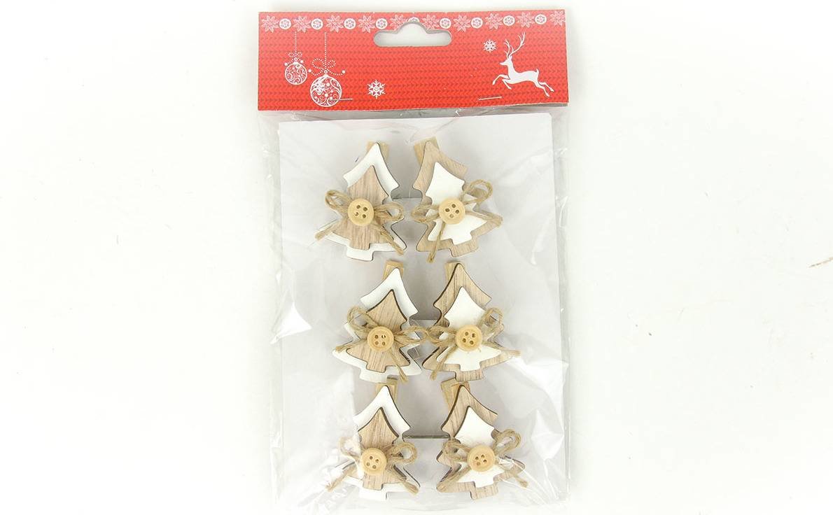 Stromeček, vánoční dřevěná dekorace na kolíčku, 6 kusů v sáčku, cena za 1 sáček AC7119 Art
