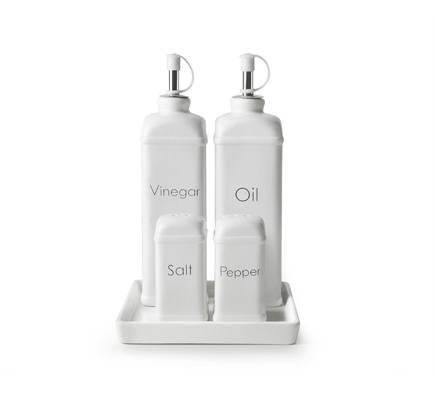 - Praktyczny zestaw: Zawiera wszystko, czego potrzebujesz - olej, ocet, solniczkę i pieprzniczkę ze spodkiem.