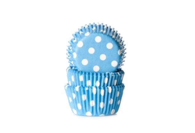Cukrářský košíček mini světle modrý puntíkovaný 60ks - House of Marie