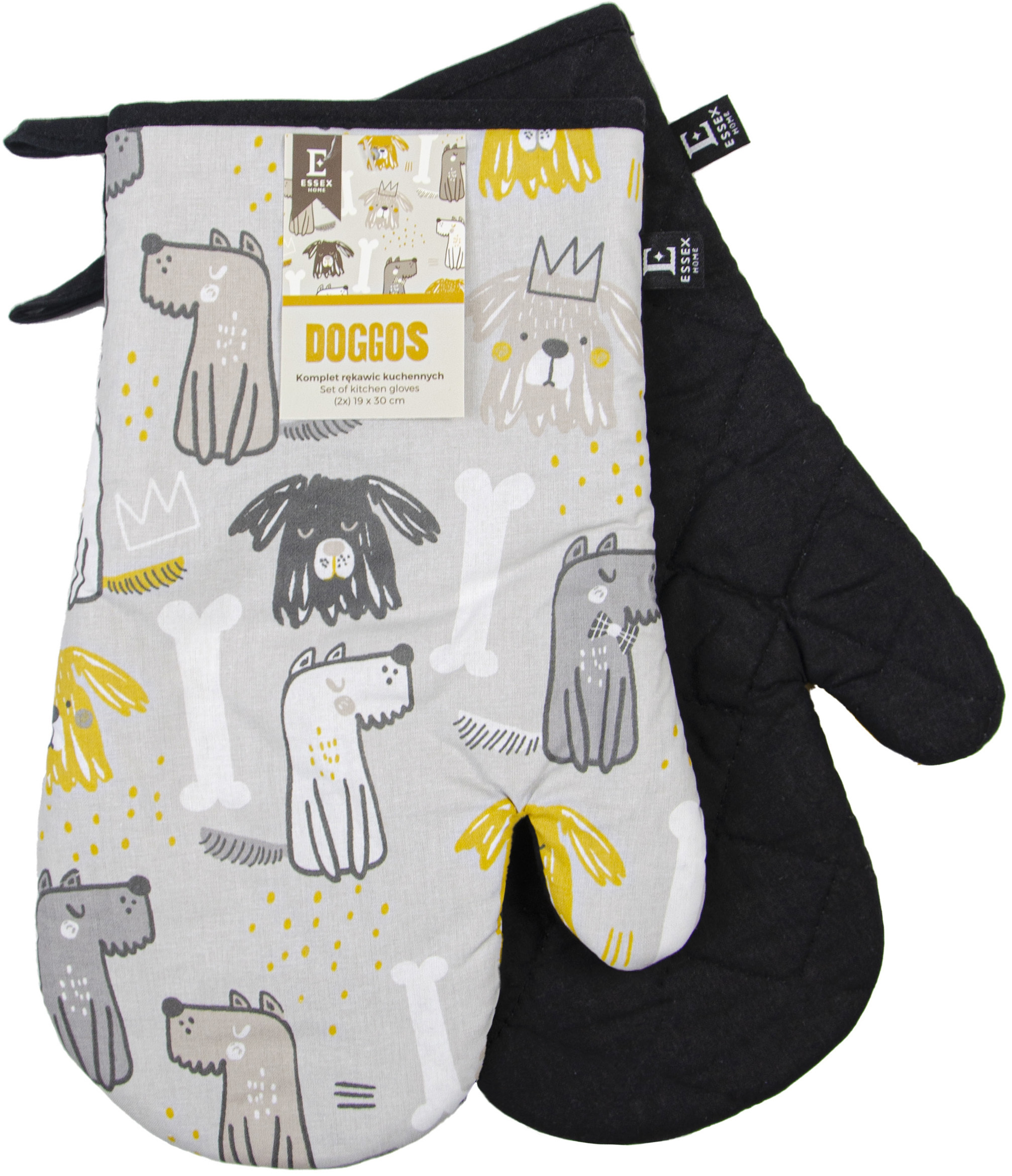 Kuchyňské bavlněné rukavice - chňapky DOGGOS šedá pejskový motiv 100% bavlna 19x30 cm Essex