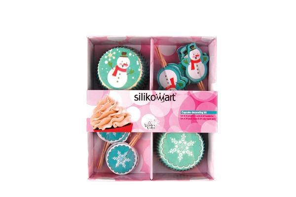 Silikomart Papírové košíčky a zapichovátka sněhuláci a vločky set 48 ks