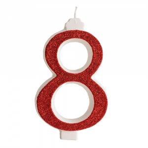 Svíčka na dort 12cm třpytivá červená číslo 8 - Dekora